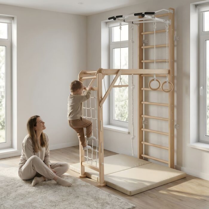 Obecnie drabinki gimnastyczne dla dzieci do domu występują w wielu różnych wariantach:- gabarytowych,